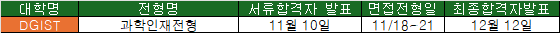 DGIST 서류합격자 발표일과 면접전형일을 확인하세요